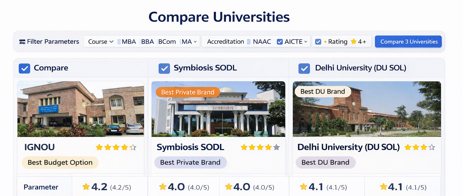 - University Comparisons – Fees, accreditation (NAAC A++, AICTE-approved), placement records, and program outcomes